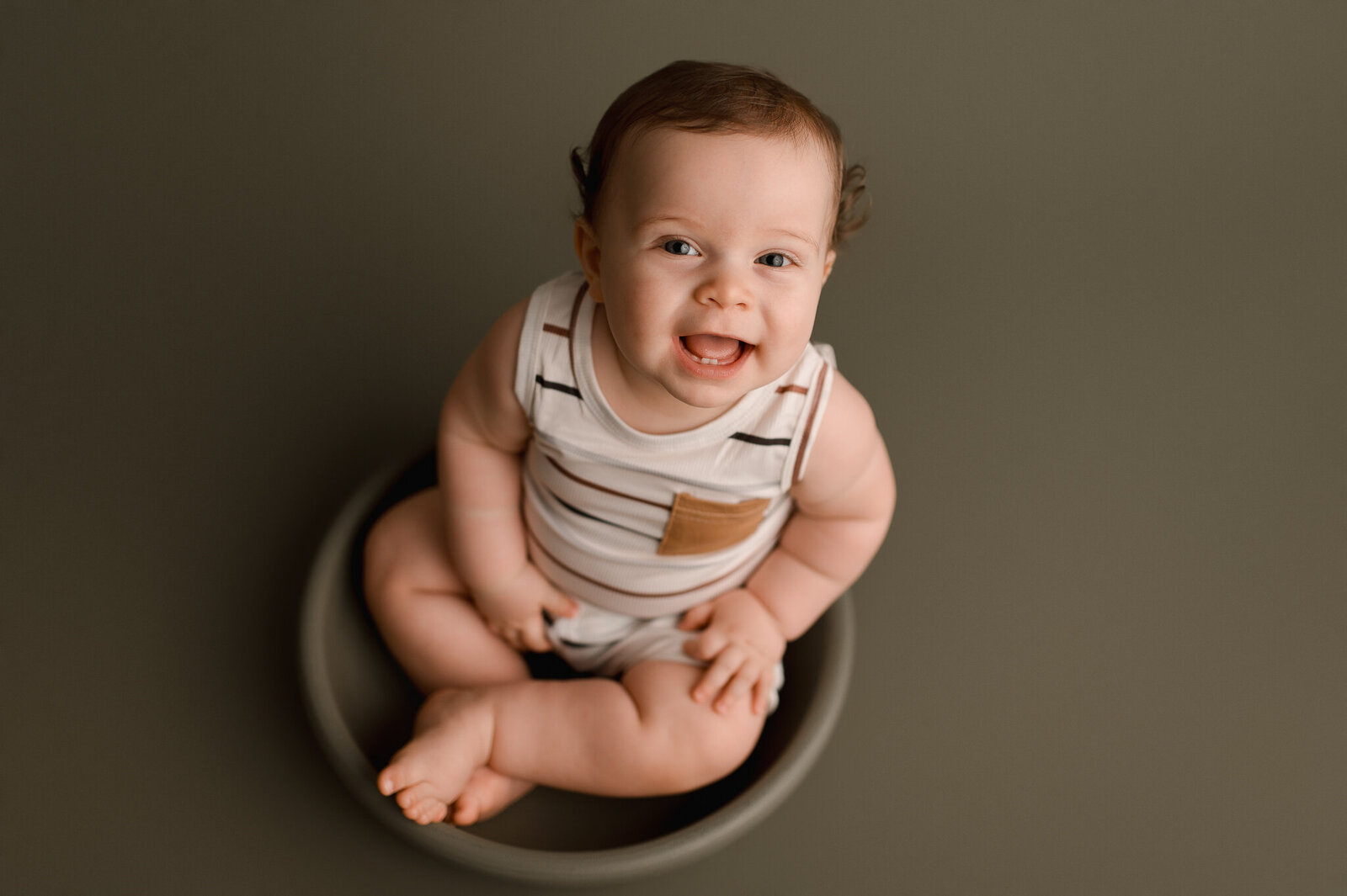 Babies grow and change in the blink of an eye, and each milestone tells a part of their story. Our studio milestone sessions are a beautiful way to pause and preserve these fleeting stages—from those first gummy smiles to sitting tall and taking wobbly steps. With soft, timeless styling and an emphasis on your baby’s unique personality, we create heirloom images that let you relive these sweet chapters for years to come.